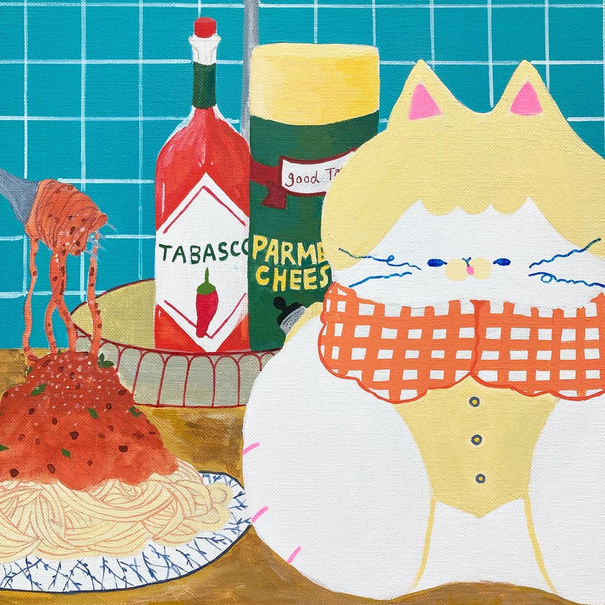 「ねこのモッツとパスタちゃん」 F8号キャンバス/アクリル絵の具/ポスターカラー 大きめの原画も2点展示しています◎ POP UPもいよいよ明日までです〜❣️🐱 来てくれたりグッズ買ったよ報告ありがとうございます😭うれし! 最後までよろしくお願いします💖 #博多阪急 #ユトリエ #illustration