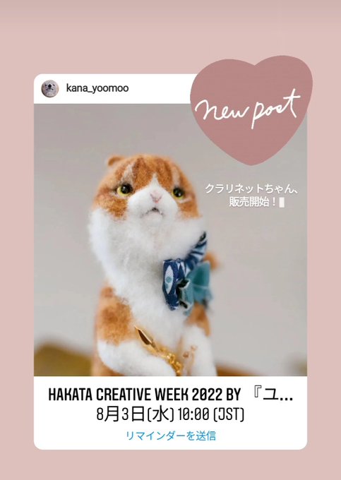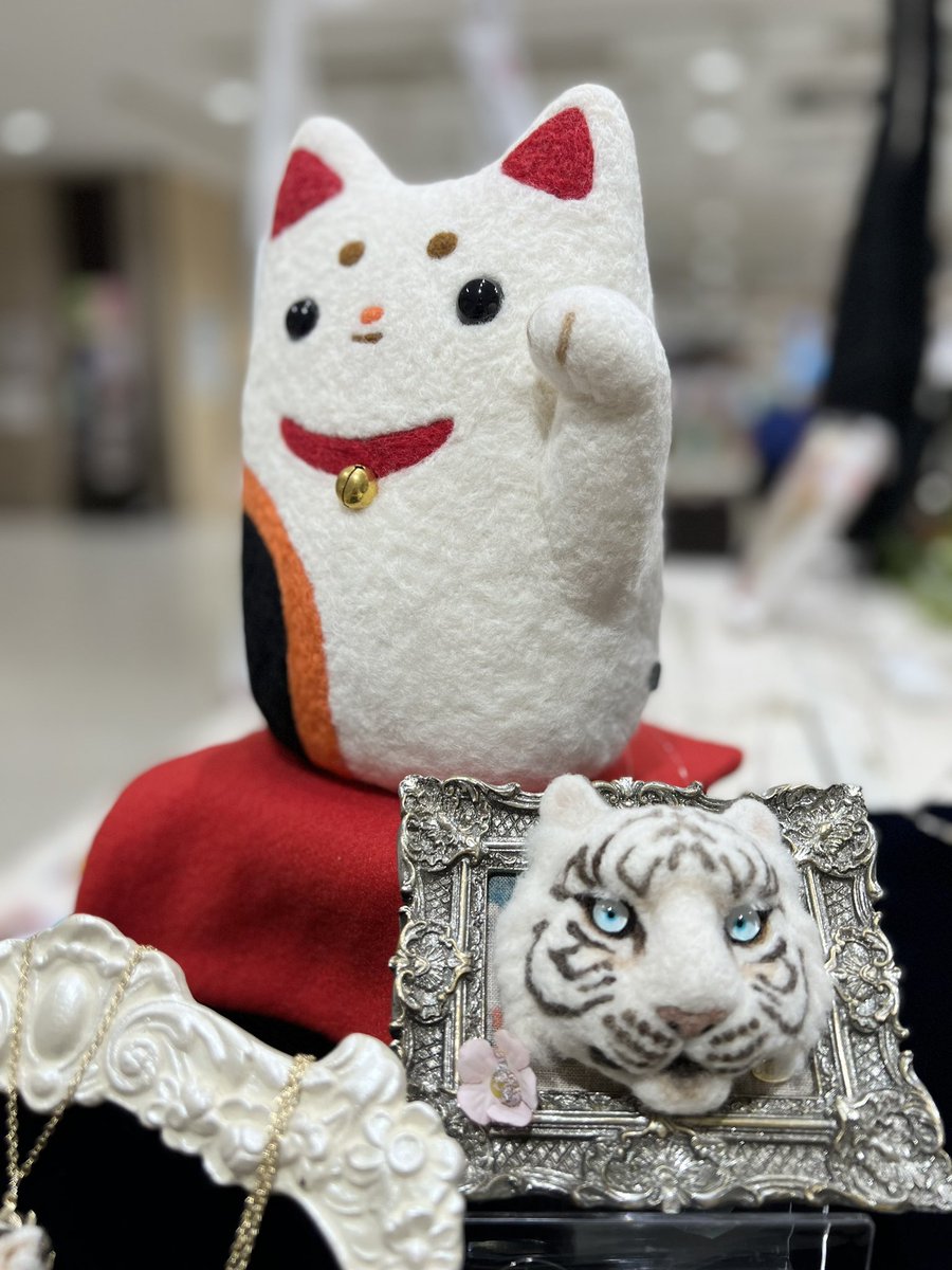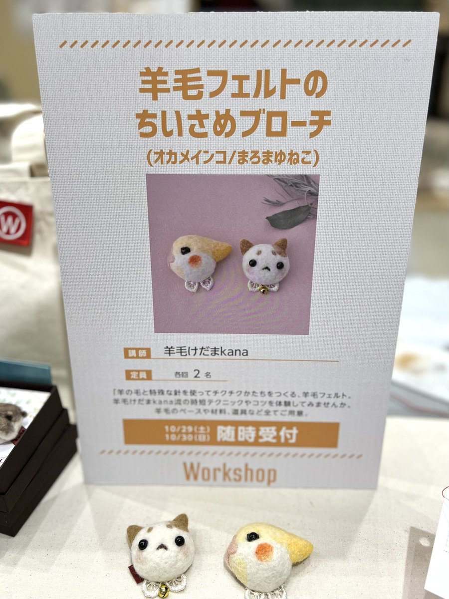 羊毛けだま kanaさん @kana_yoomoo の作品、どの子も可愛い💕 29(土)と30(日)は、オカメインコとまろまゆねこちゃんのブローチが作れるワークショップがあるそうです! #博多阪急 #羊毛フェルト twitter.com/kana_yoomoo/…