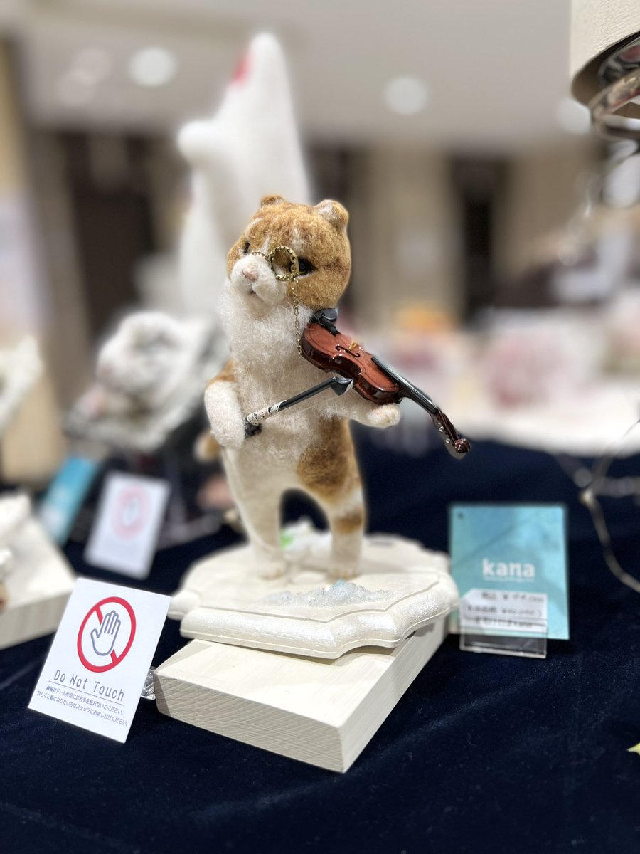 #まるごと猫フェスティバル in博多 3日目スタートです✨ チクチク実演しながらお待ちしております〜!お気軽二お声掛けくださいね。 カメラ向けたら見られてた ฅ•ω•ฅ ✧‧˚ 🚩10月24日5時まで! #博多阪急 #猫フェス #羊毛けだまkana #羊毛氈 #ハチワレ ちゃん! #羊毛フェルト実演中✨