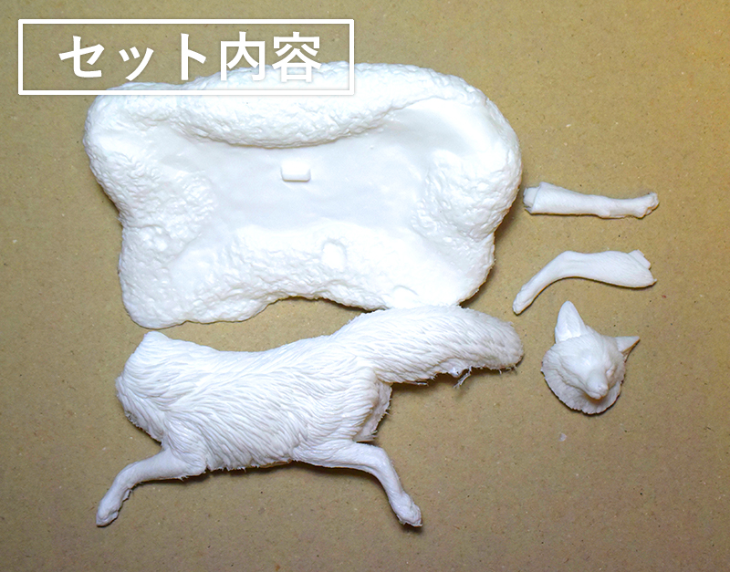 ③深雪狐(未塗装未組立キット) 素材/レジンキャスト白 パーツ数/5 組立時サイズ/高さ6cm・幅8cm・奥行14.5cm(台座含) 価格¥8000 ※前足が台座から若干浮き上がってしまう不具合があります。熱で矯正可能ですが、ご了承の上購入下さいませ。 #博物ふぇす #WF2023S #WF2023Sおしながき