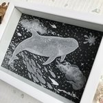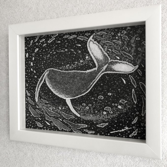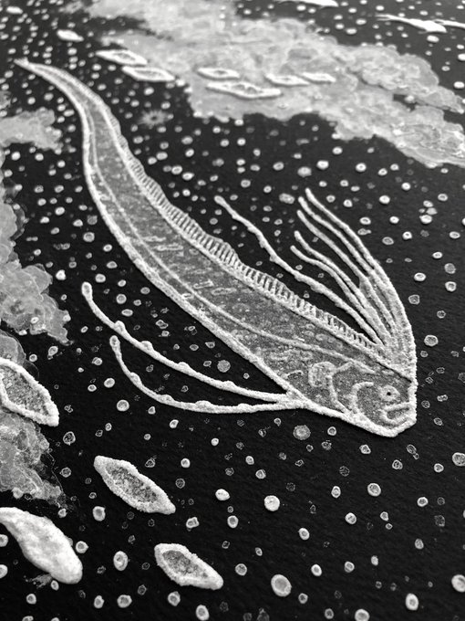 少しずつ変化中の #塩水アート 作品「twilight」 リュウグウノツカイも持って行ったので、「流転」ザトウクジラと一緒に後ろに飾れる予定…!🐋 (サイズは241×302あり、もし飾れていなかったらお声掛けいたたければお観せできます) #博物ふぇす #博物ふぇすてぃばる