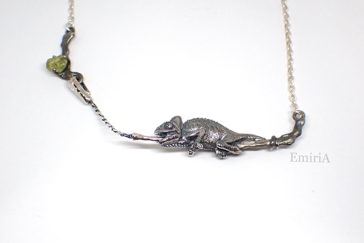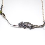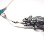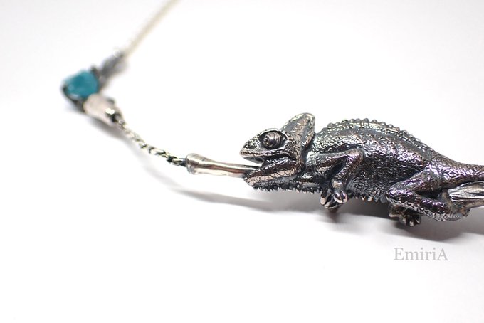 新作!【カメレオン狩りネックレス】silver925,ブルーグリーンアパタイト/クンツァイト/マリガーネット 目にも止まらぬ速さで舌を伸ばし、舌先の粘液でくっつけてとらえるカメレオン。獲物(原石)を狩ろうとしているモチーフのネックレス ※こちら5匹限定販売となります #博ふぇす #博物ふぇすてぃばる