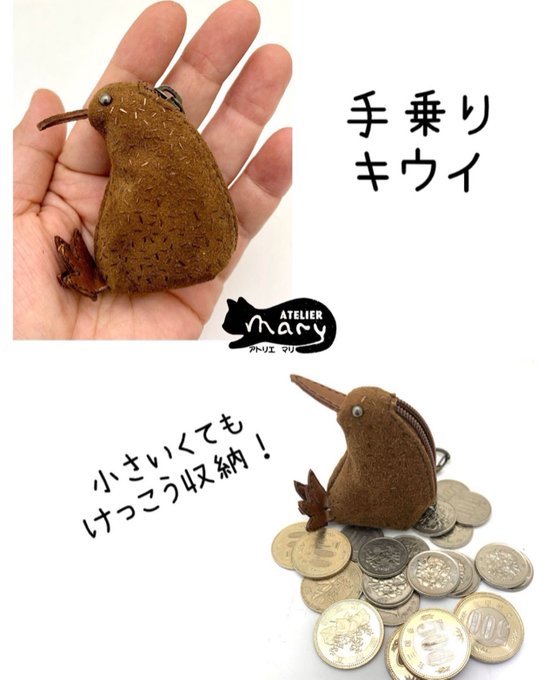 キウイポシェットに仲間が増えました‼︎カードサイズのお座りキウイと手乗りキウイ〜博物ふぇすてぃばるに出店予定。ブースNo.E-1#博物ふぇすてぃばる #博物ふぇす #博物ふぇすてぃばる8 #キウイ鳥グッズ #ateliermaryleather
