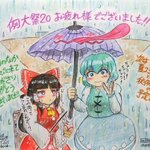例大祭20めちゃ楽しかったです!☔️ 遊びに来てください皆さまありがとうございました!🙏 #多々良小傘 #博麗霊夢 #深夜の真剣お絵描き60分一本勝負 (東方版・1758回目参加) (※2022/5/7お題) #例大祭20 #博麗神社例大祭2023