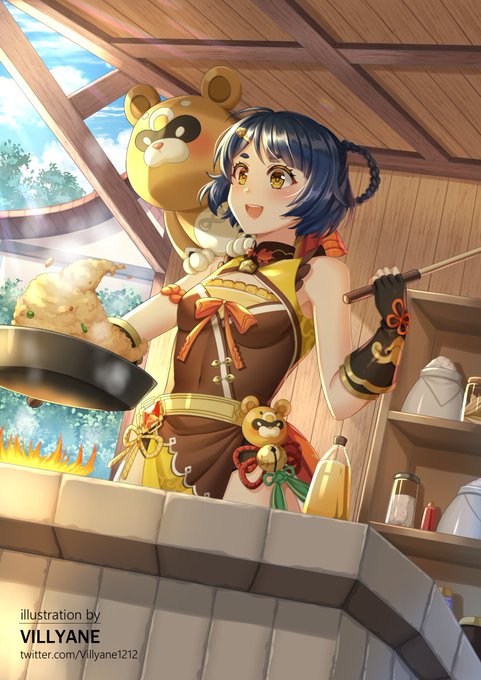 Xiangling and Guoba!! Commissioned by @citrusanime #卯香菱 #原神 #GenshinImpact #genshinimpactfanart #digitalart