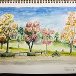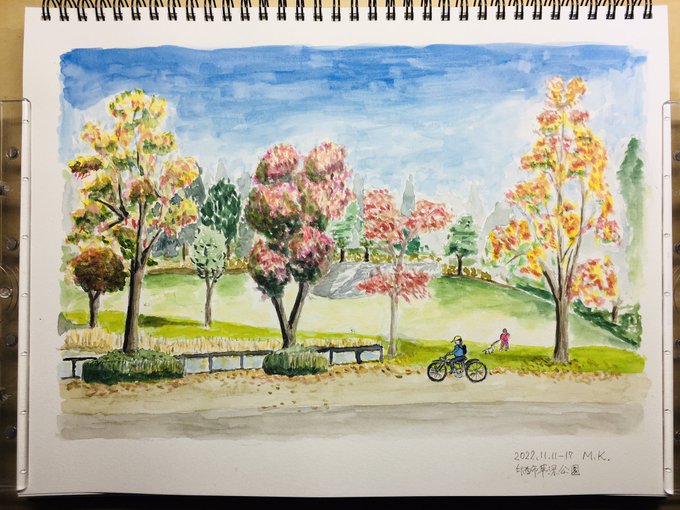 印西市草深公園 街路樹の紅葉 #urbansketchers #sketching #park #coloredleaves #drawing #watercolors #landscape #inzai #japan #スケッチ #透明水彩 #水彩画 #風景画 #印西市 #紅葉