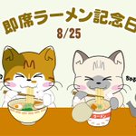 🍜 #即席ラーメン記念日 1958年、世界初の即席ラーメン「#チキンラーメン」が #日清食品 から発売された日だそうです。 最近のインスタント麺は、色んな味の凝ったものが続々と発売されていて…すごいなぁ~と思います😳 #イラスト #illustration #猫 #ねこ #カップヌードル 食べたいなぁ…😗