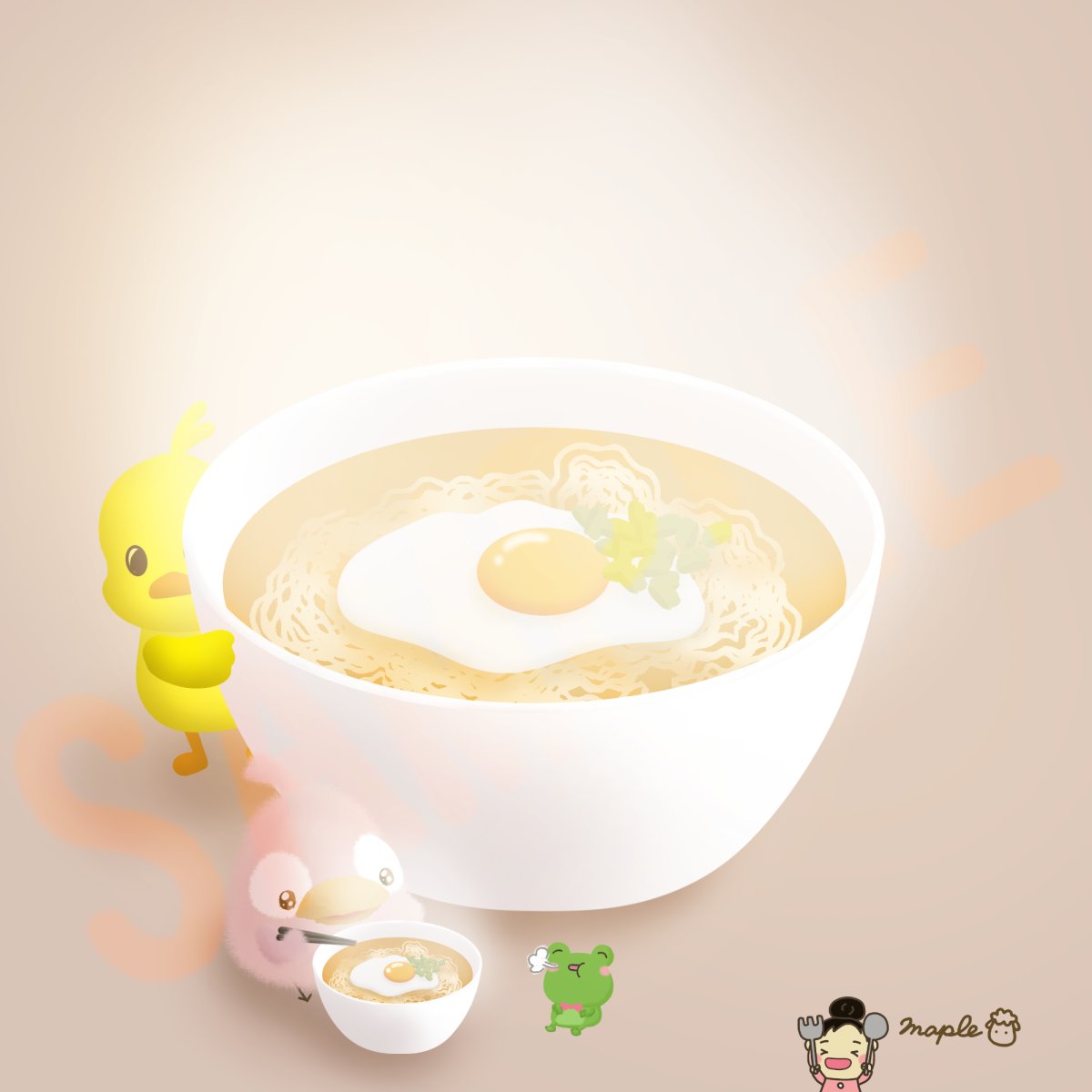 今日は即席ラーメン記念日だそうです☺️🐥🍜🐥 この日、世界初の即席ラーメン「チキンラーメン」が発売されたそうです☺️ #イラスト #digitalart #illustration #OCART #今日は何の日 #即席ラーメン記念日 #OCイラS #LINE絵文字 #お絵描き #鳥 #カエル