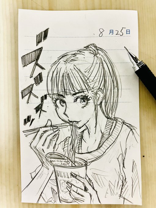 今日8月25日は即席ラーメン記念日🍜朝ドラ観てました📺お湯▶︎3分▶︎食べる🥢今では当たり前に食べてますがホントすごい発明ですよね💡 #絵描きさんと繋がりたい #イラスト好きな人と繋がりたい #絵柄が好みって人にフォローされたい #創作イラスト #今日は何の日 #即席ラーメン記念日