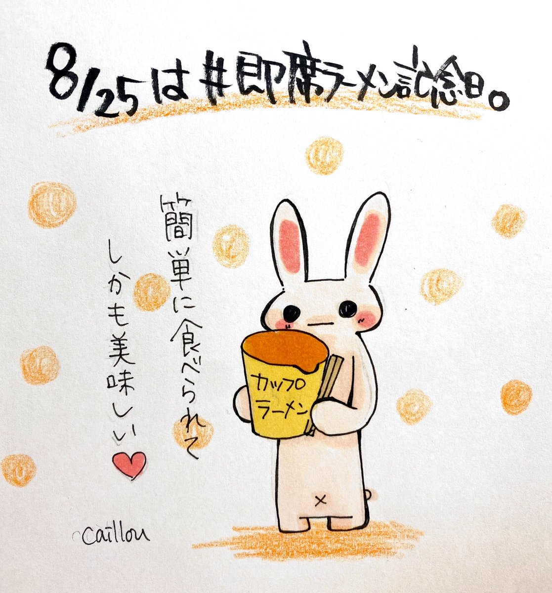 #お絵描き #猫好きさんと繋がりたい #即席ラーメン記念日 #チキンラーメン誕生の日 チキンラーメン💕 アレンジレシピも豊富✨ チキンラーメシ チキンラーメンサラダ etc でも私はやっぱり普通の チキンラーメンが好きです😊✨ 🍜🐣いろいろ食べたいね🍜🐣