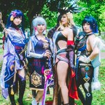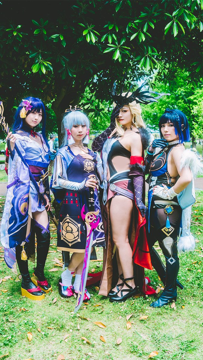 初手集合でうふふꉂ🤭 なんか身長差みんないい感じ 【Cosplay】 雷電 ぷおぷおちゃん 神里綾華 ひかりちゃん 淑女 じぶん 夜蘭 たまちゃん 撮影:しょー太郎二郎さん (@taroujirou_c ) #原博オールスター併せ21 #GenshinImpact #博神