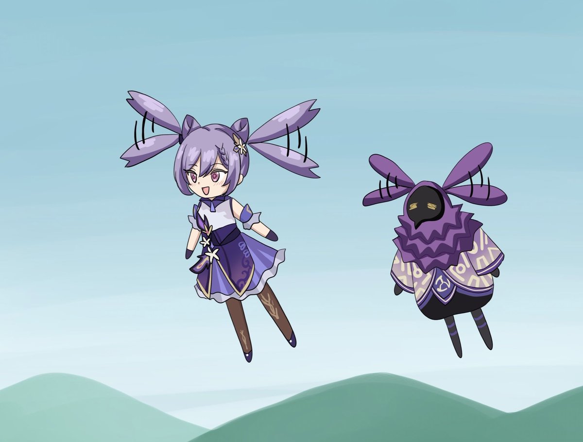 🐰原神アビスイラスト🐰 リクエストいただいておりました、フィッシュルアビスです。 が、色々と勝手に追加させていただきました! (最初の頃にあった隕石イベントでの邂逅です) #原神 #原神アビスイラスト