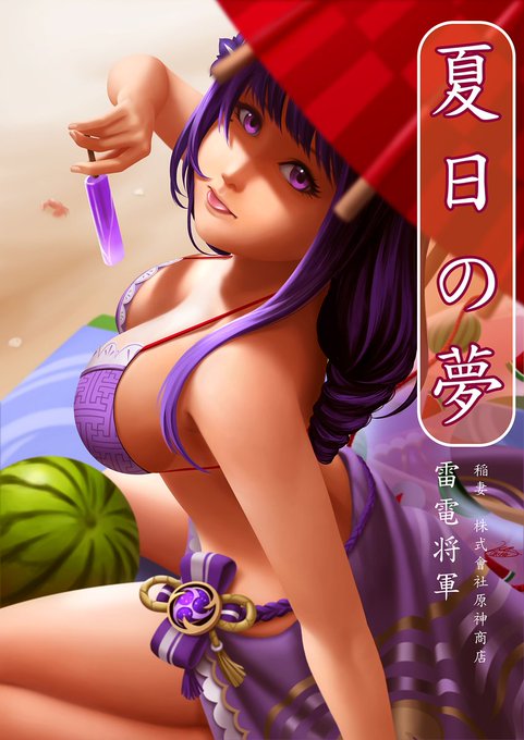 #原神イラコン夏FA #雷電将軍 #原神イラコン夏衣装 #原神イラコン #原神 #Fanart #水着女子 #水着 Raiden Shogun Summer Dreams So decided to do up the cover edition, in the style of old showa picture books