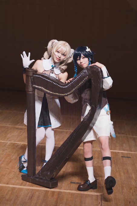 【コスプレ/cosplay】 原神 /Genshin Impact 先日のオーケストラ併せでウェンティのハープはまかろにちゃんにもお手伝いしてもらい手作りしました!!!🤭✨ 本当にありがとう🥲🫶💓 photo / takasan(@takasan109 ) #原神併せ第四弾オーケストラ編