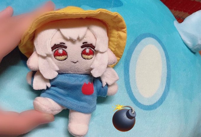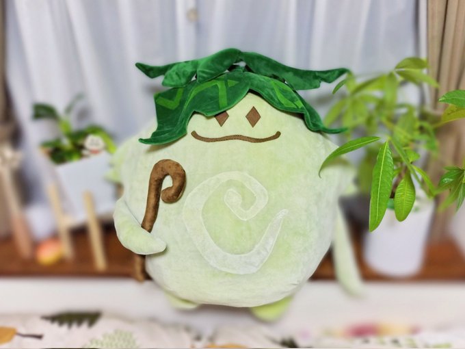 #Genshinimpactfanart #原神手芸部 #自作ぬい アランナラのアランバリカぬい完成😂 旅人の身長と比較しながら、ほぼ原寸大のサイズで作っています。大体50cm位 海賊版ぬいでは省かれていたちょっぴり見える頭の模様も染めました✨