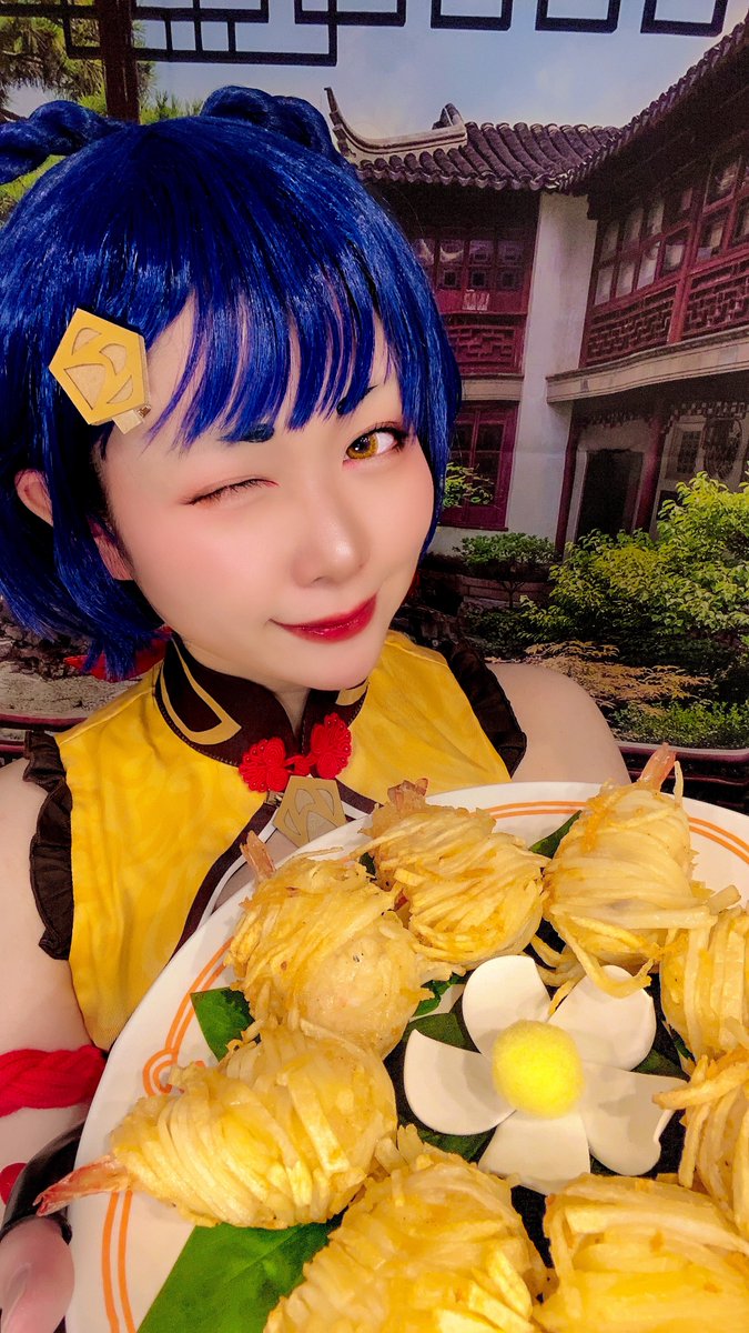 『料理の時間だよ🐼🌶🔥』 ⋆°。✩ エビのポテト包み揚げ ✩˚。⋆ 旬のジャガイモで🥔🍁 月逐い祭の刻晴&グゥオパァーが可愛すぎて…! 食べてみたくなったので作りました🥰💗 _ #テイワット料理再現コンテスト #原神 #xiangling #月逐い祭 #原神料理部 #コスプレ #cosplay