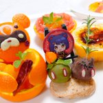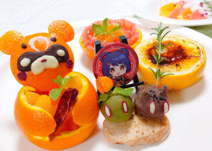 久々の原神スイーツファンアート・ω・ オレンジでグゥオパー作りました🧸🌶 岩スライム、草スライムのお団子も添えて… これ簡単だし、顔はチョコじゃなくてペンでもできるので皆さんもぜひ✨🍊 #原神 #GenshinImpact #原神料理部 その他詳細良かったら見てください✨↓↓