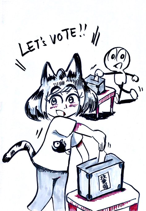 おはようございます‼︎☀️ 今日は #参議院選挙2022 ! みんなで投票に行きましょう‼︎ #ドラ猫姉さん #ゆかいなまめちゃん #イラスト #illustration #アナログイラスト #創作キャラ #創作イラスト #選挙 #絵描きさんと繫がりたい #イラスト好きと繋がりたい