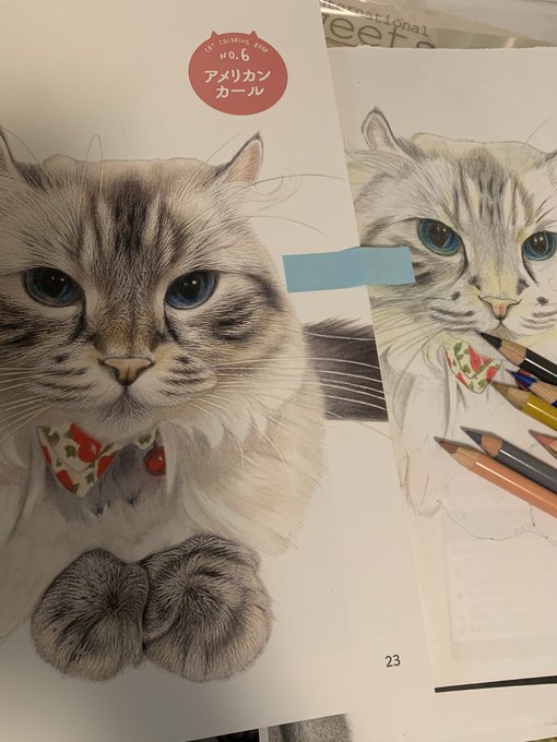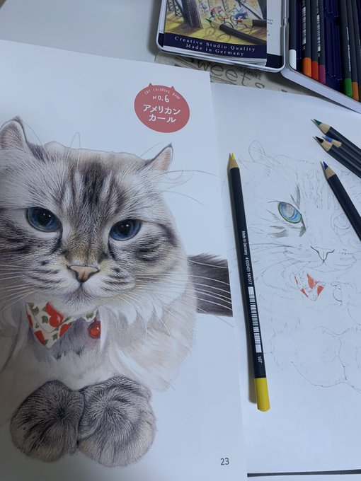 #音海はる #ねこぬりえ #双葉社 #ねこ #エキゾチックショートヘア #ファーバーカステル #色鉛筆 はぁ、、山形に観に行きたいなぁ。。 しかもワークショップとか、、。 とおぃぃぃ😭 この塗り絵、辛いけど可愛くて楽しい笑 黄土色と白が混ざったような色ってないんですか。。