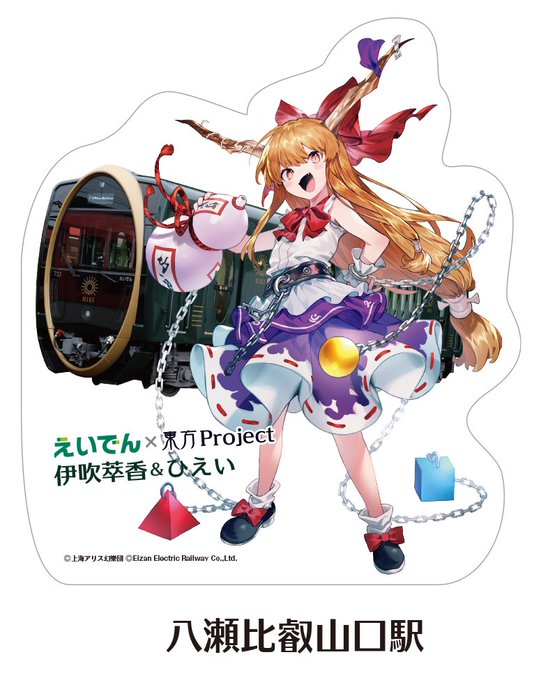 えいでん×東方Project コラボレーション企画 「文々。新聞叡電版」に伊吹萃香のイラストで参加させていただきました!描き下ろしイラストを使用したラッピング車両や、各駅には大型POPが設置されてます👀✨ 詳細はこちらッッッ↓↓ atpress.ne.jp/news/296873 #東方Project #京都 #叡山電鉄