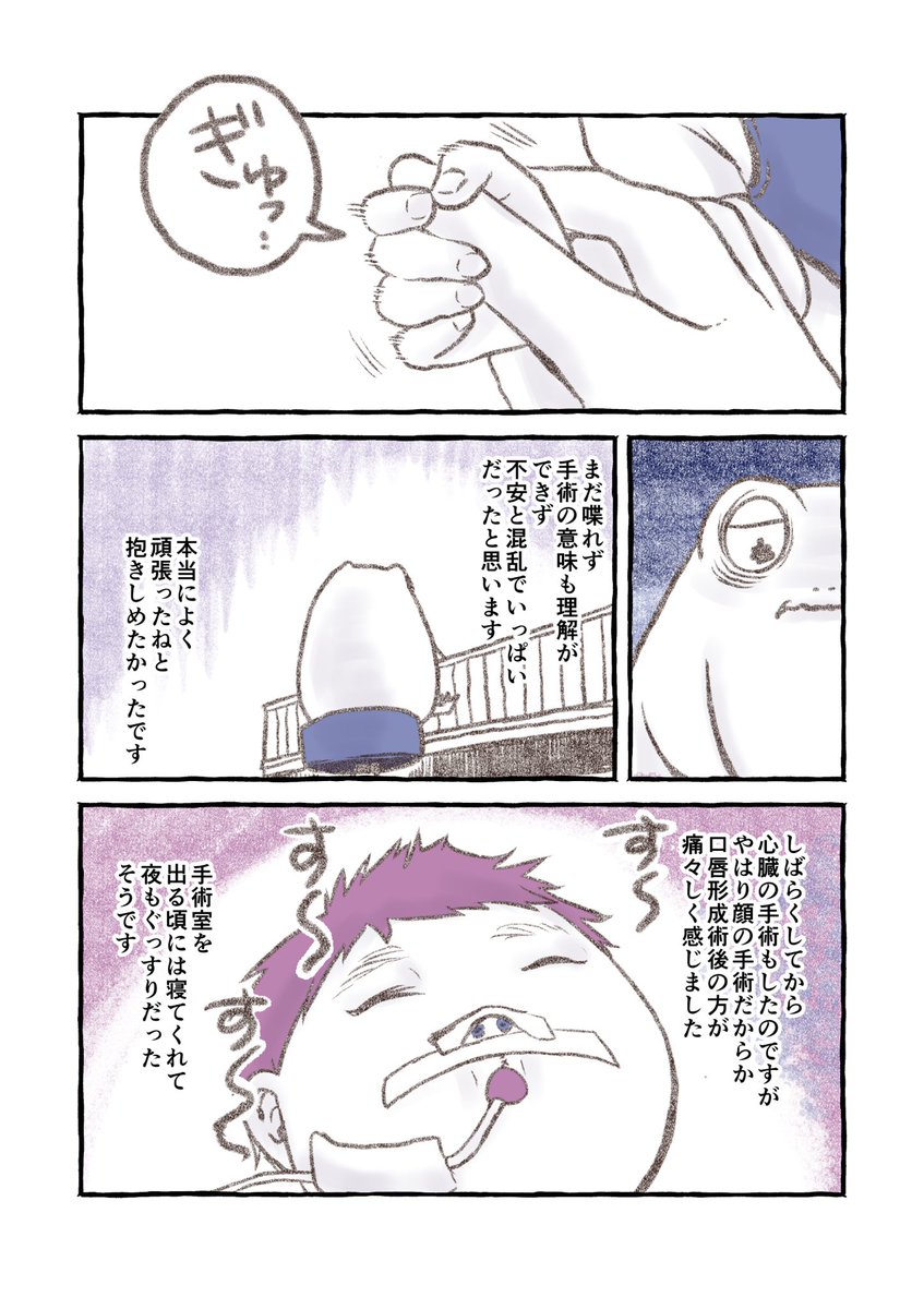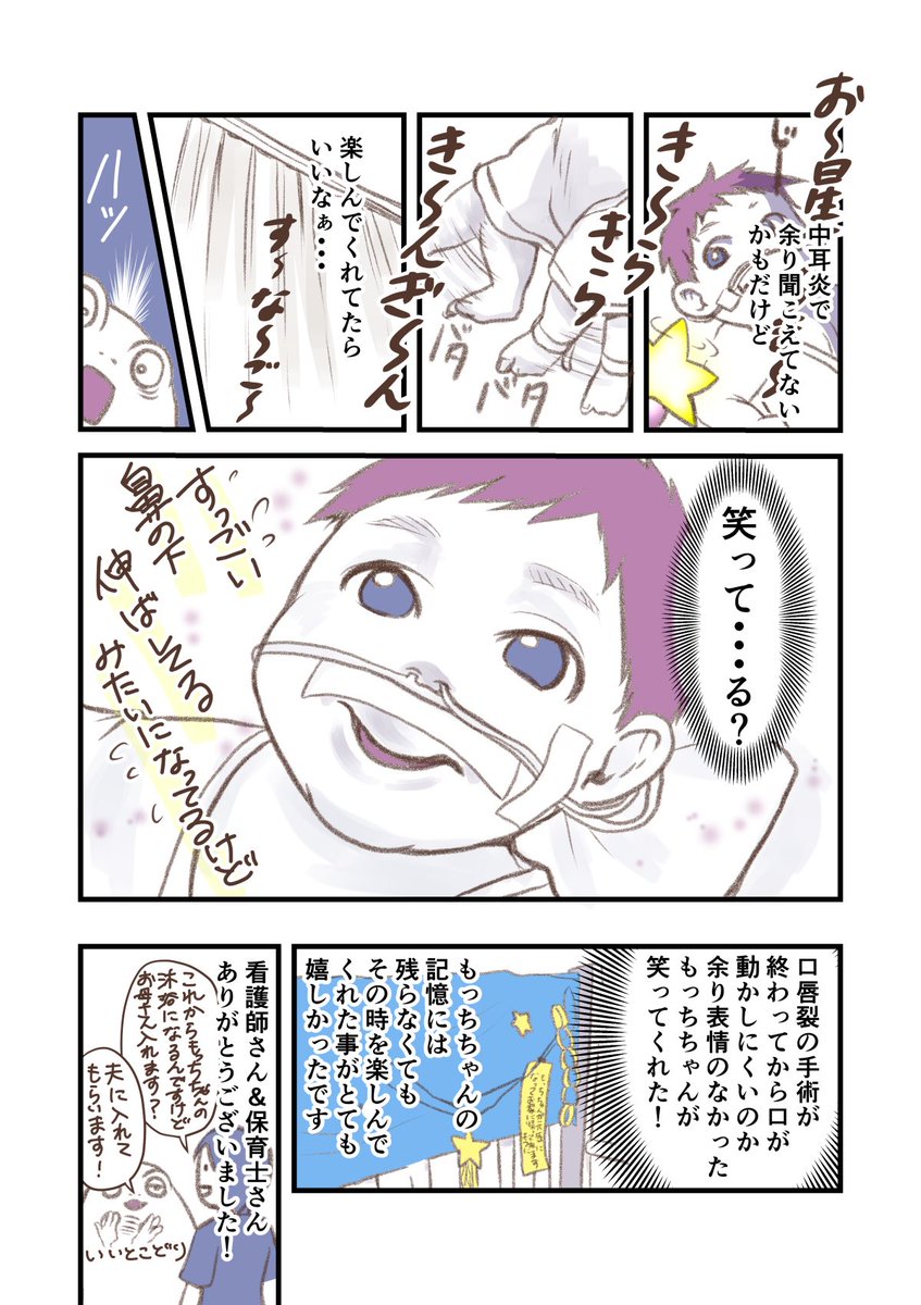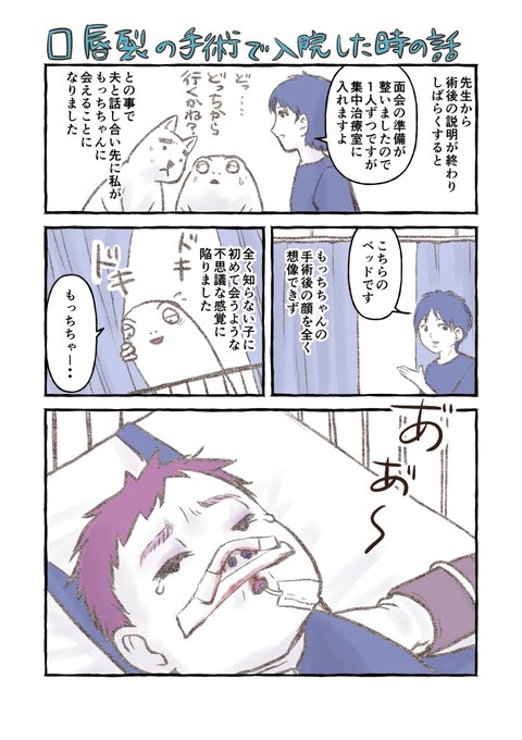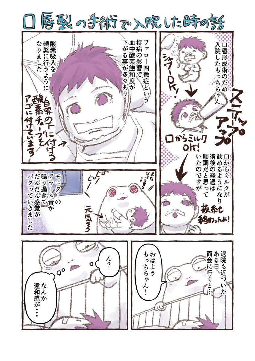 うちの子の場合漫画 口唇形成術後、集中治療室での話しです 色々と病院によって違う点あると思いますが、私たち家族の体験談として読んでいただけると嬉しいです🙇♀️ #口唇口蓋裂 #漫画が読めるハッシュタグ #エッセイ漫画