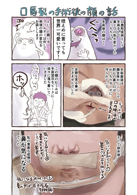 うちの子の場合漫画 今回は見た目の話し 口唇形成術で親御さんが気になるのはお子さんの顔がどう変わるかだと思います 元々の顔立ちや傷の目立ちにくさなど個人差があり、あまり参考にならないと思いますがうちの子の今はこんな感じです #口唇口蓋裂 #漫画が読めるハッシュタグ #エッセイ漫画