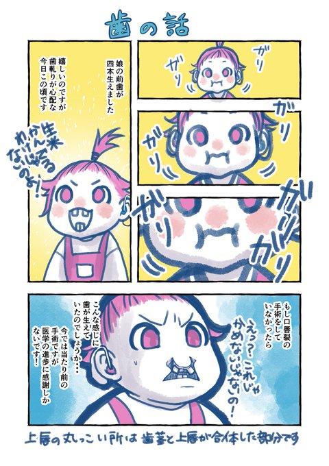うちの子の場合漫画 去年の入院前の出来事 口の中に入れるプレートの洗浄と入浴についてです 病院によって指導が違う点あると思います 私たち家族の体験談として読んでいただければ幸いです🙇♀️ #漫画が読めるハッシュタグ #口唇口蓋裂 #コミックエッセイ コミチ comici.jp/fukura42/episo… (1/3)