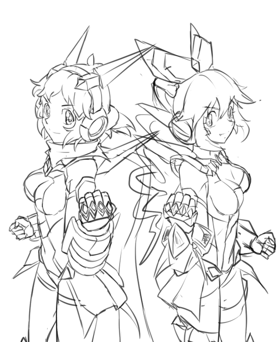 Some practice doodles before going to sleep. #らくがき #doodle #戦姫絶唱シンフォギア #シンフォギアミラージュ #口田美加 #ミカ・ジャウカーン #ロボ娘