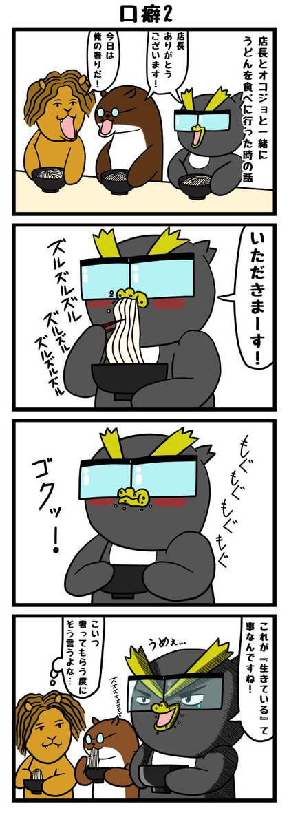 ぺんぐいん太郎 四コマ漫画「口癖2」 #ぺんぐいん太郎 #イラストレーター #ぺんぐいん太郎の日常 #イラスト #日常イラスト #四コマ漫画 #4コマ漫画 #漫画イラスト #うどん #口癖 #オリジナルキャラクター #イラスト好きな人と繋がりたい #絵描きさんと繋がりたい