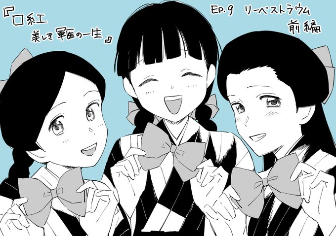『口紅 美しき軍医の一生』最新話更新です。 和らげ用にモブのリボン三姉妹を描きました。 よろしくお願いいたします! #口紅_美しき軍医の一生 #口紅軍医 twitter.com/comic_ruelle/s…