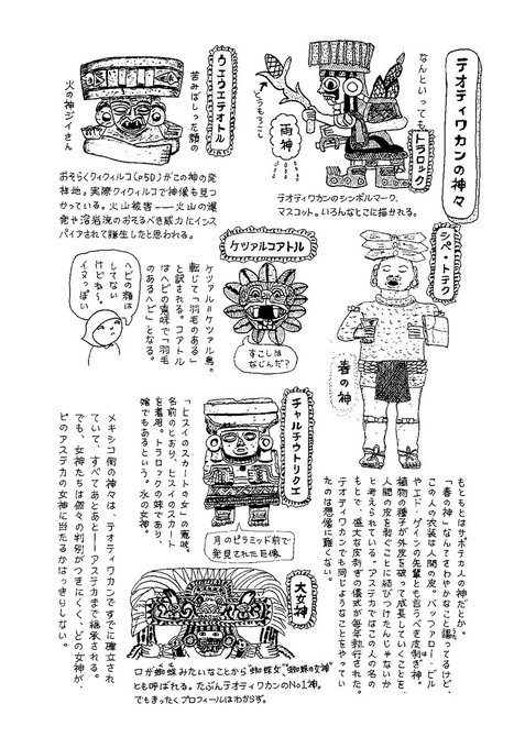 アステカの先輩文明、テオティワカンの神々のことをかいたページです 『古代マヤ・アステカ不可思議大全』草思社 という本です ためし読み↓ soshisha.tameshiyo.me/9784794217622 アステカの神が、テオティワカンからずっと引き継がれてのがわかります。 #古代メキシコ展 前に、ぜひ流れのおさらいを~♡ #FGO