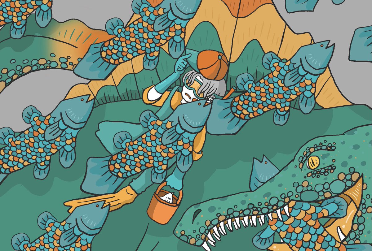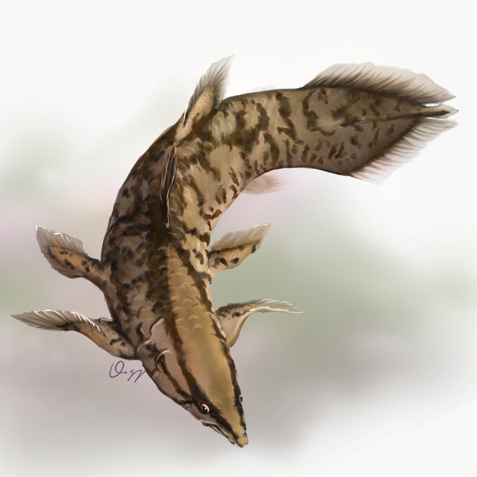 アクセルロディクティス描きました✨ ※海洋堂のチョコラザウルスのフィギュアを参考にしながら描きました #illustration #イラスト #古代魚 #アクセルロディクティス #応魚イラスト