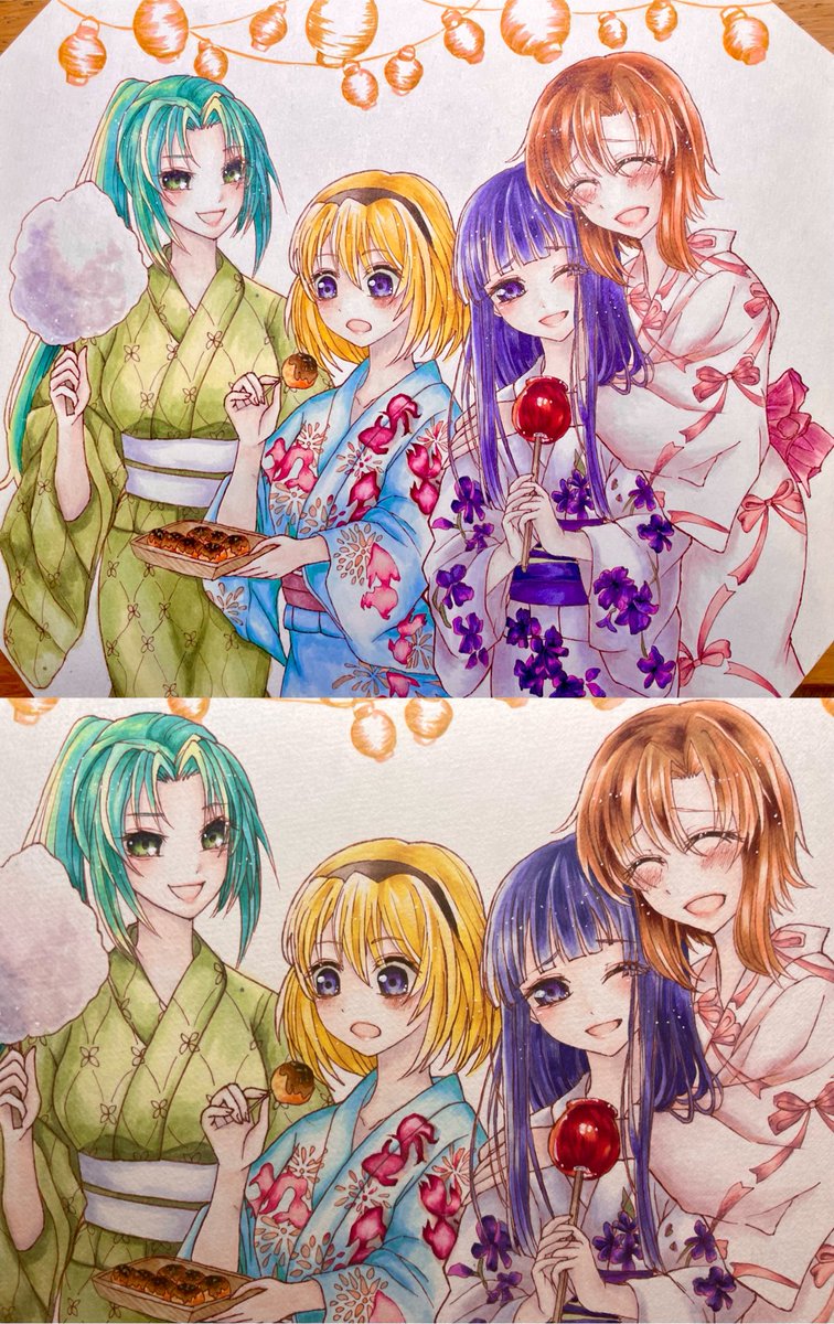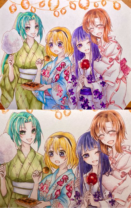 ひぐらしのなく頃に 夏祭り #ひぐらしのなく頃に #イラスト好きな人と繋がりたい #絵描きさんと繋がたい #アナログイラスト #夏祭りイラスト #園崎魅音 #北条沙都子 #古出梨花 #竜宮レナ