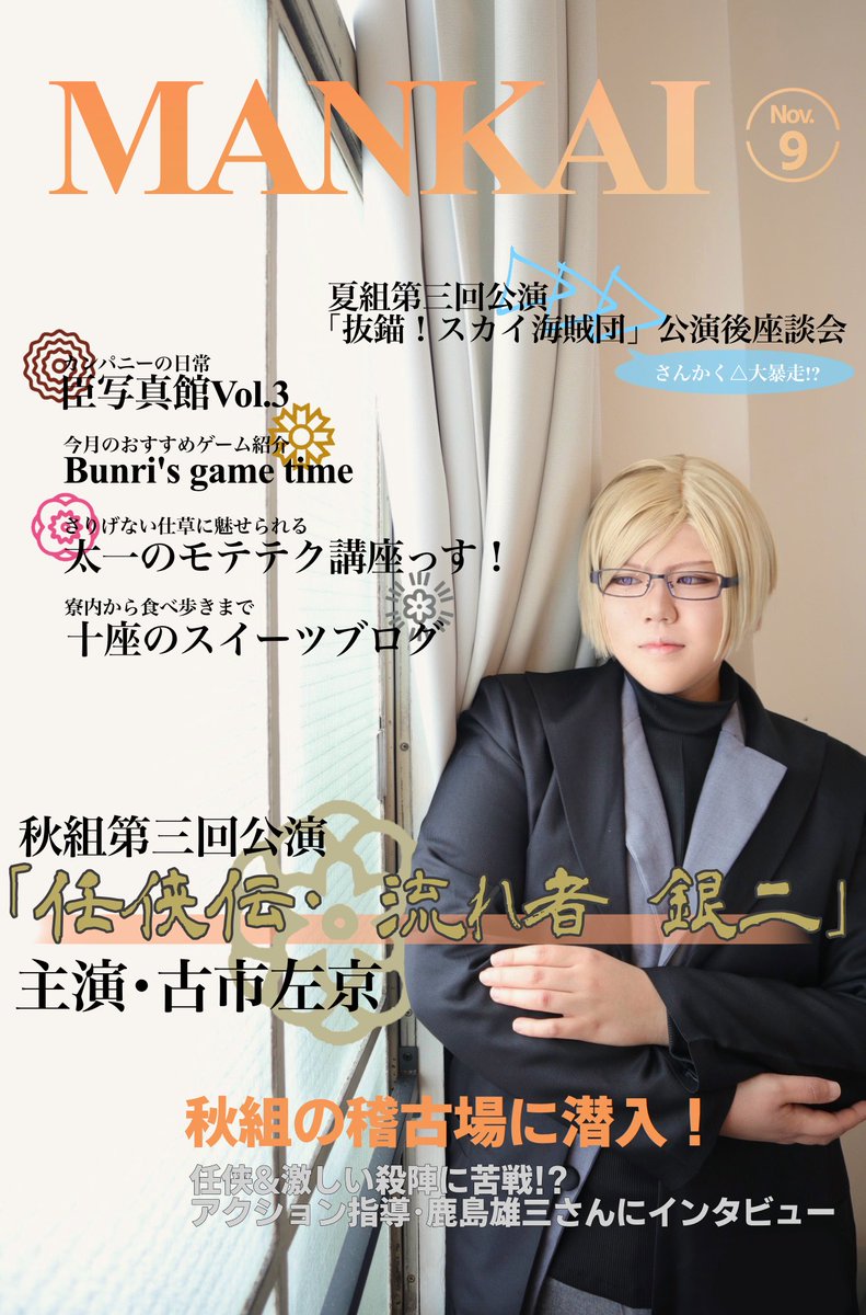 ⚠捏造雑誌企画 【cosplay/コスプレ】 -月刊MANKAI MAGAZINE 🍁9月号・秋組特集- 〈メイン企画〉秋組第三回公演 〈団員特集〉Autumn Troupe🍁 加工・文字入れ:ろん photo:sui(@suidesuyo_ ) #エースリーコスプレ #古市左京コスプレ #cosplay