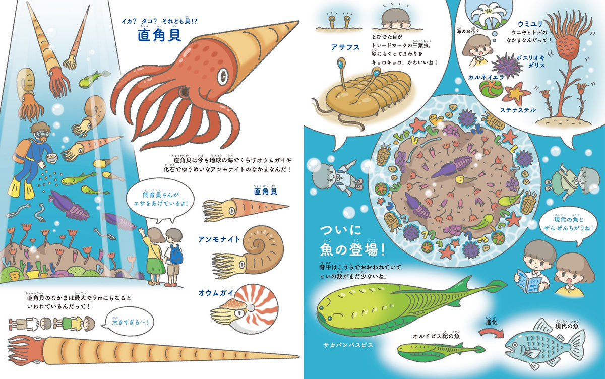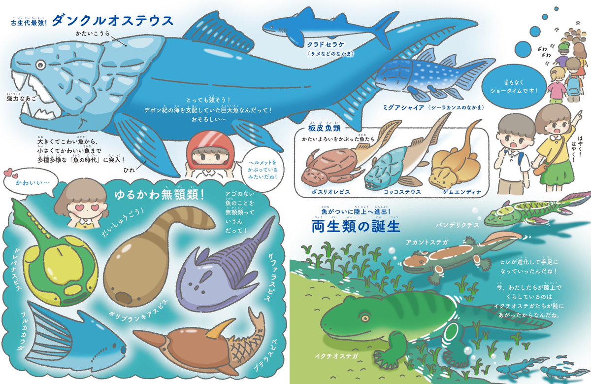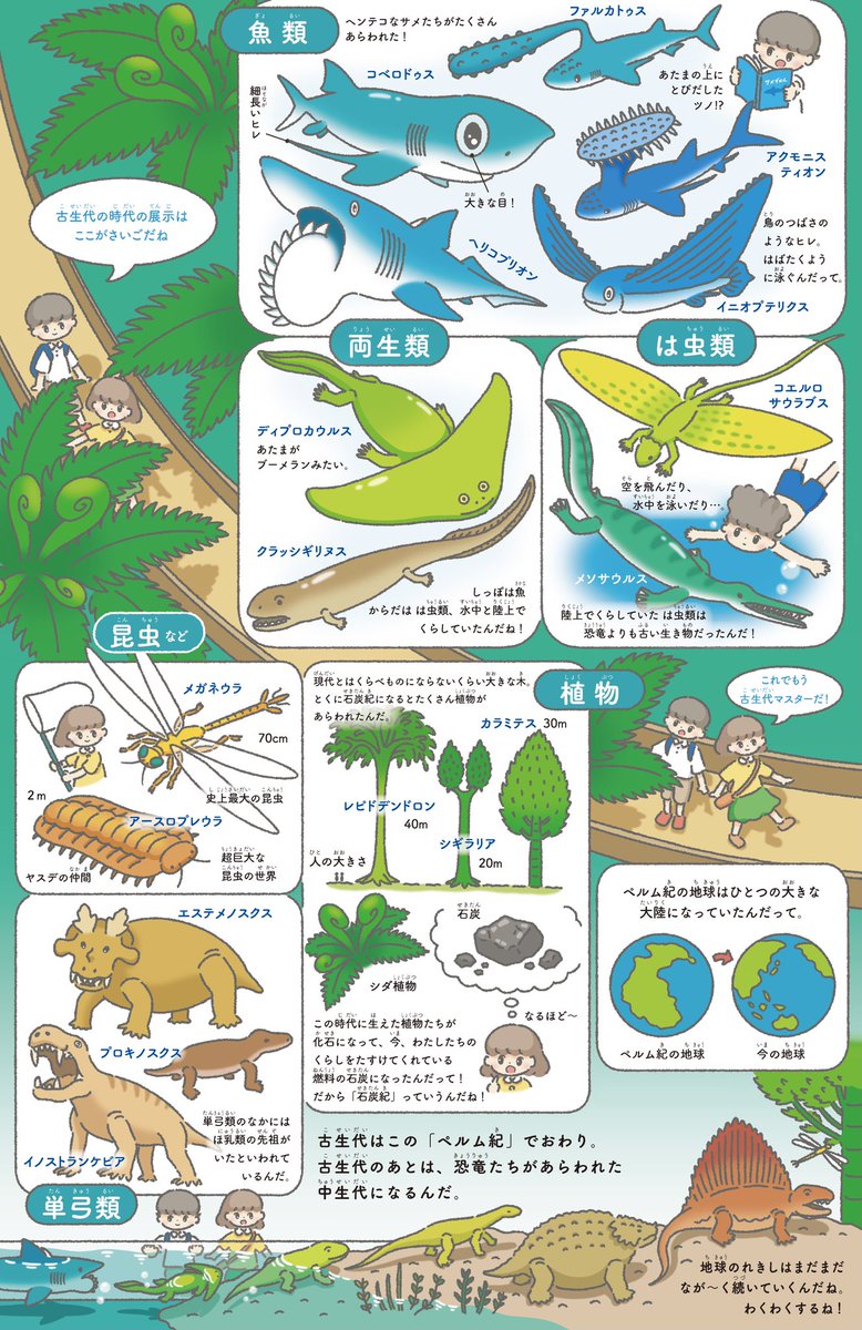 この年表も古生代水族館に載っています〜 古生代水族館マップ👀 サカバンバスピスを展示している「オルドビス紀館」は水族館の中心にあります🏃🏻♂️ #古生代水族館 twitter.com/kota_draw/stat…