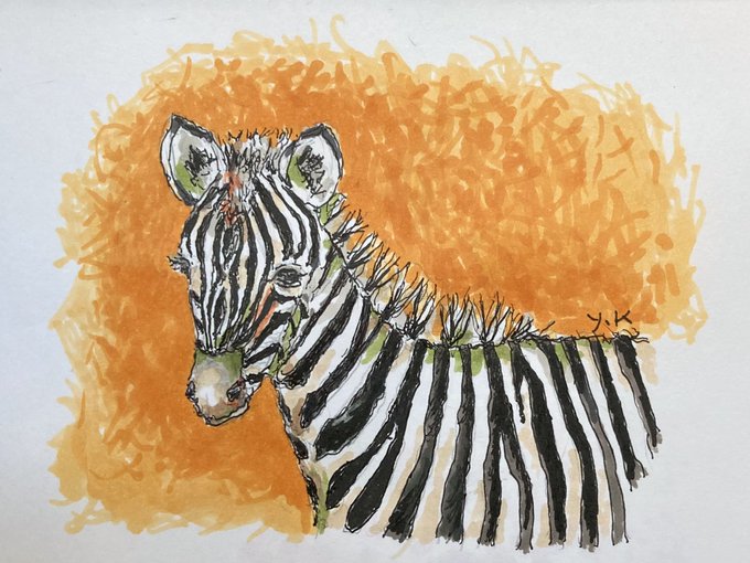 シマウマ🦓ゼブラ 気性が荒いなんて、全然見えないよ 2020年 #脳出血 により入院。#右半身麻痺 #失語症 利き腕ではなく、違う方の手(左手)で描いています。 I'm drawing w/a different hand (left hand) not w/my dominant arm.#art #artwork #イラスト #cerebralhemorrhage #righthemiplegia