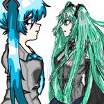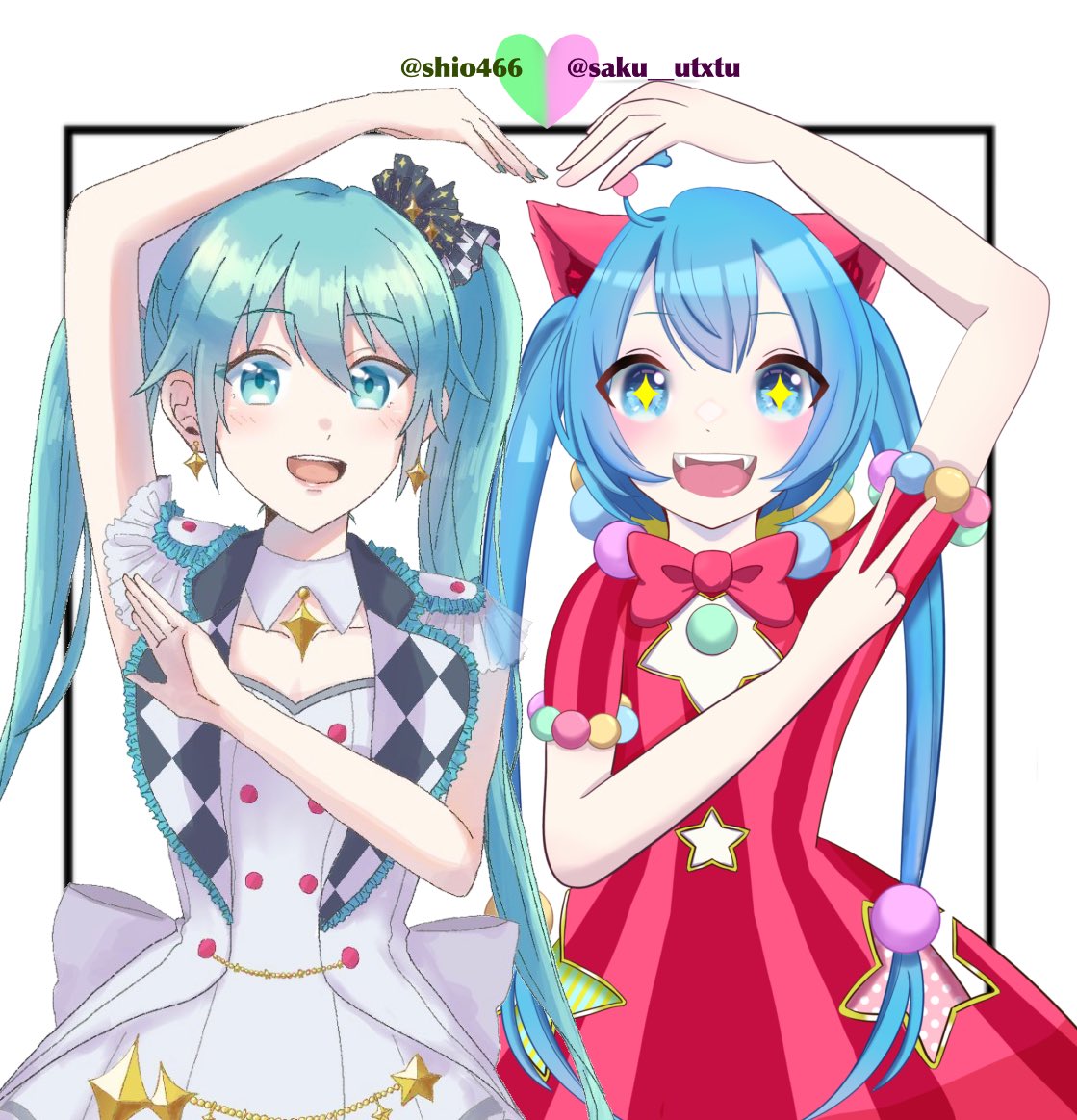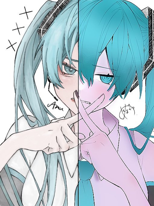 リア友と合作しましたー!!! 下書き、髪→ @hanaaumon 線画、服、加工?→ わし 肌、目→ @ran89_xx 最高に楽しかったーーー!!! #絵描きさんと繋がりたい #合作 #夏の創作クラスタフォロー祭り #初音ミク