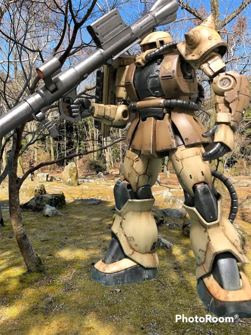 #量産機バンザイ 素晴らしいタグ!便乗します。 話題の #PhotoRoom で合成ジオラマ化し、 #LensFX を使ってエフェクトのせまくりました。使ったキットは1つだけ。アプリの力で小隊になりました! #合成天然ジオラマ #GUNPLA #ガンプラ好きと繋がりたい