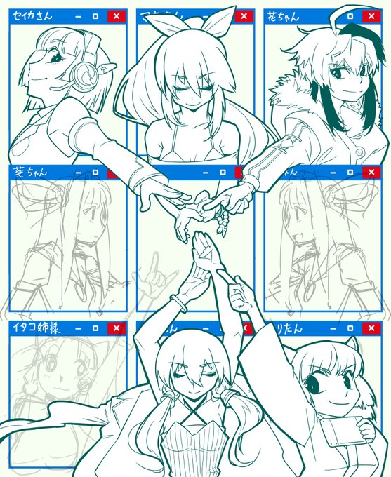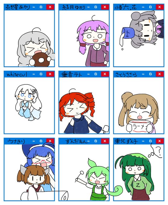 #合成音声キャラを描こう 今回のメンバー ・東北ずん子 ・結月ゆかり穏 ・弦巻マキ ・CoeFontトリオ ・中国うさぎ ・小春六花 ・タ(文章はここで途切れている) ・IA ・ずんだもん(妖精) ・初音ミク ・ついなちゃん ドタバタ感( ͡° ͜ʖ ͡°)σ
