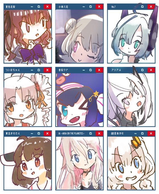 #合成音声キャラを描こう 好きなキャラ&気になってるキャラいっぱい描きました🙌 今回描いたキャラ ・夏色花梨 ・アリアル ・小春六花 ・琴葉茜 ・さとうささら ・つくよみちゃん ・もち子さん ・足立レイ ・双葉湊音