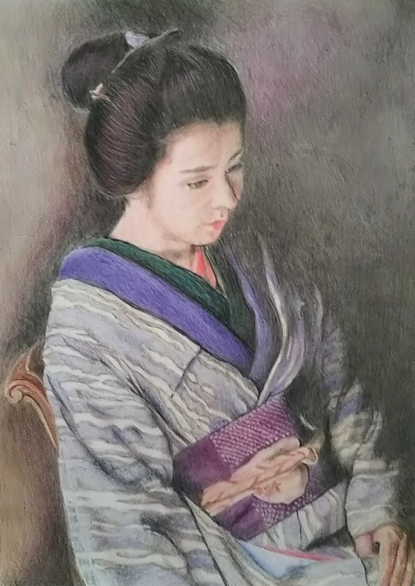 じゃなくて、描いてて背筋が伸びてきたことでした。ポリクロモス No.173 オリーブイエローグリーン。 #色鉛筆画 #吉永小百合 #ファーバーカステル #ポリクロモス #fabercastell #polychromos