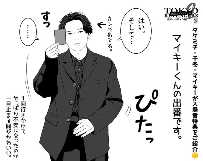 ここの流れが意味不明でほんと最高。匠海くんに「胡散臭い」って言われて変なスイッチ入っちゃったんでしょうか?最後にお辞儀した後のやり切った感のある表情もステキで改めてこういうセンスもほんと好き🤭#東京リベンジャーズ #東京リベンジャーズ2 #みんなで東リベ2 #吉沢亮