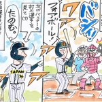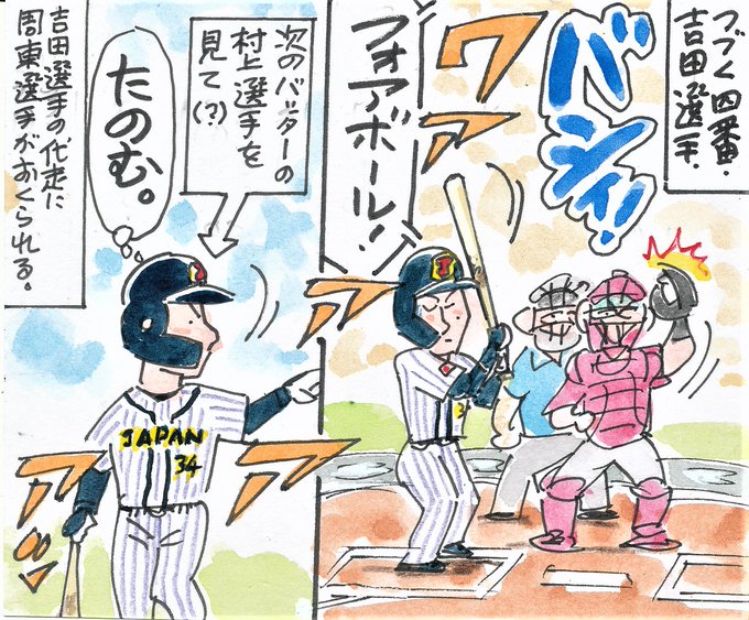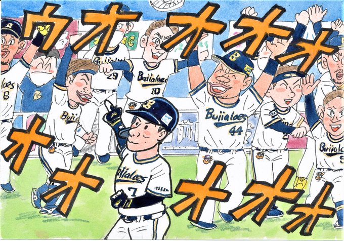 10月27日 日本シリーズ第5戦 オリックス―ヤクルトから。 バファローズ、劇的逆転勝利! サヨナラ本塁打を打ったのは、オリの主砲!! ナインが喜ぶ風景、描きたかったのです。 #吉田正尚 #オリックス・バファローズ