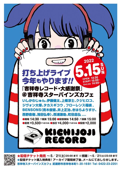 #吉祥寺レコード 🎸LIVEは 5月15日(日) 吉祥寺スターパインズカフェ ※配信もあります mandala.gr.jp/SPC/schedule/2… 通販は 5月16日(月) 19時よりスタートです❣️ gallerysou.theshop.jp