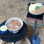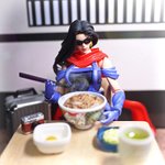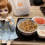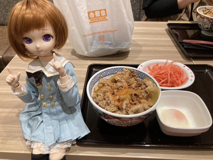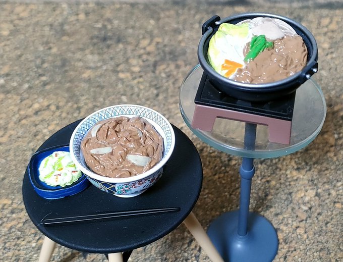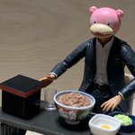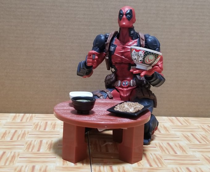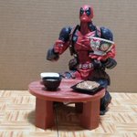 #夜のフィギュア撮影会 お題『無』 やっとの夕飯、吉野家焼き肉定食…。 デップー「俺ちゃん、感無量…。」 #フィギュア撮影友の会 #楽しく玩具撮影中 #オモ写 #デッドプール #吉野家 #カプセルトイ