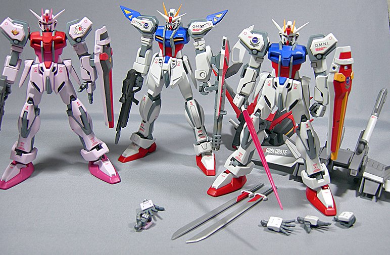 #同じプラモを3つ 便乗させていただきます! 最近EGばっかり作ってるような... #ストライクガンダム はホントいいキットです #ガンプラくじ のカラー版は2021/2022を組み合わせ、黄色はレジン複製したモノです! #ガンプラ好きと繋がりたい #ガンプラの画像を貼るとRTされると聞いて