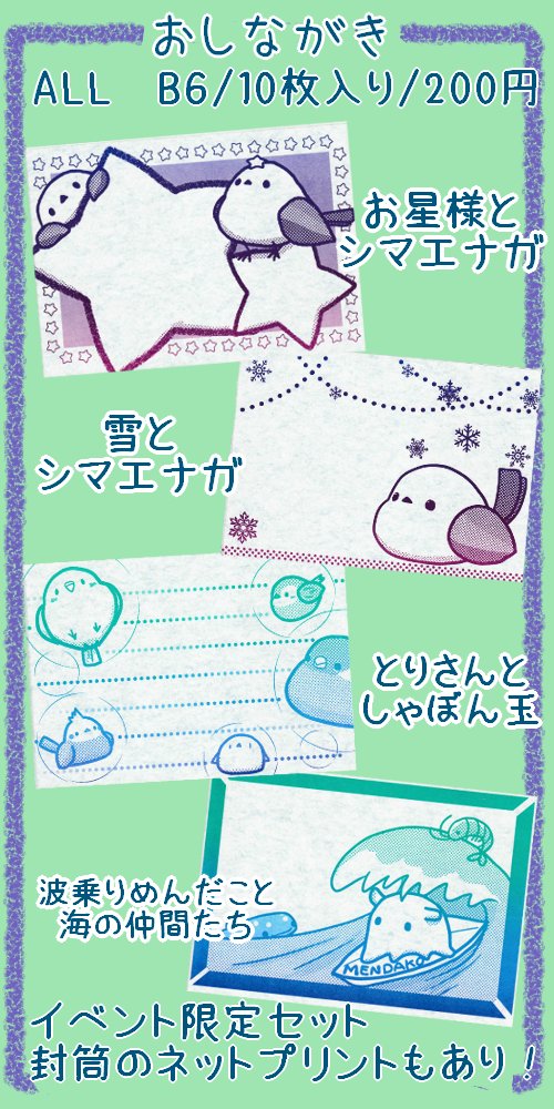 本日21:30よりイベント開始となります!! ・いきものグラデ便箋 ・便箋に合わせた封筒のネットプリント ・エアスケブ受付…その他! たくさんご用意しておりますので覗きに来て下さると嬉しいです! 中の人はまるっこいシマエナガのアバターです! #同人恋文2 #同人恋文2_info twitter.com/oxo_kotone/sta…