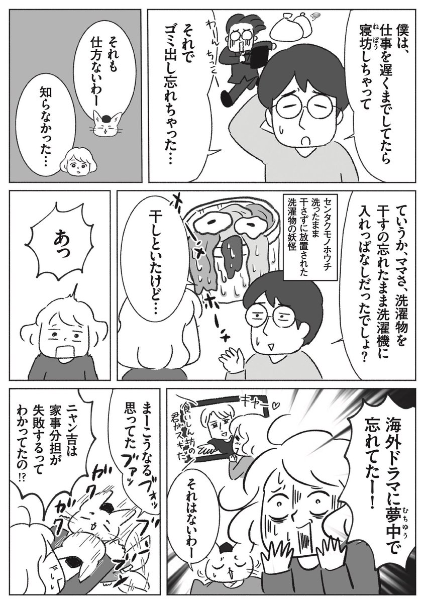 えっ!えっっ!?😳😳 【岩本・西森の金曜日のパパたち】に、#名もなき家事妖怪 が紹介されて⁉︎ ありがとうございます😭🙏 ママたちの気持ちはもちろん、パパたちの家庭と仕事の葛藤も描かせていただいた本なので、育児中の岩本さんと西森さんにに読んでいただけて嬉しいです☺️ twitter.com/kinpapaabc/sta…