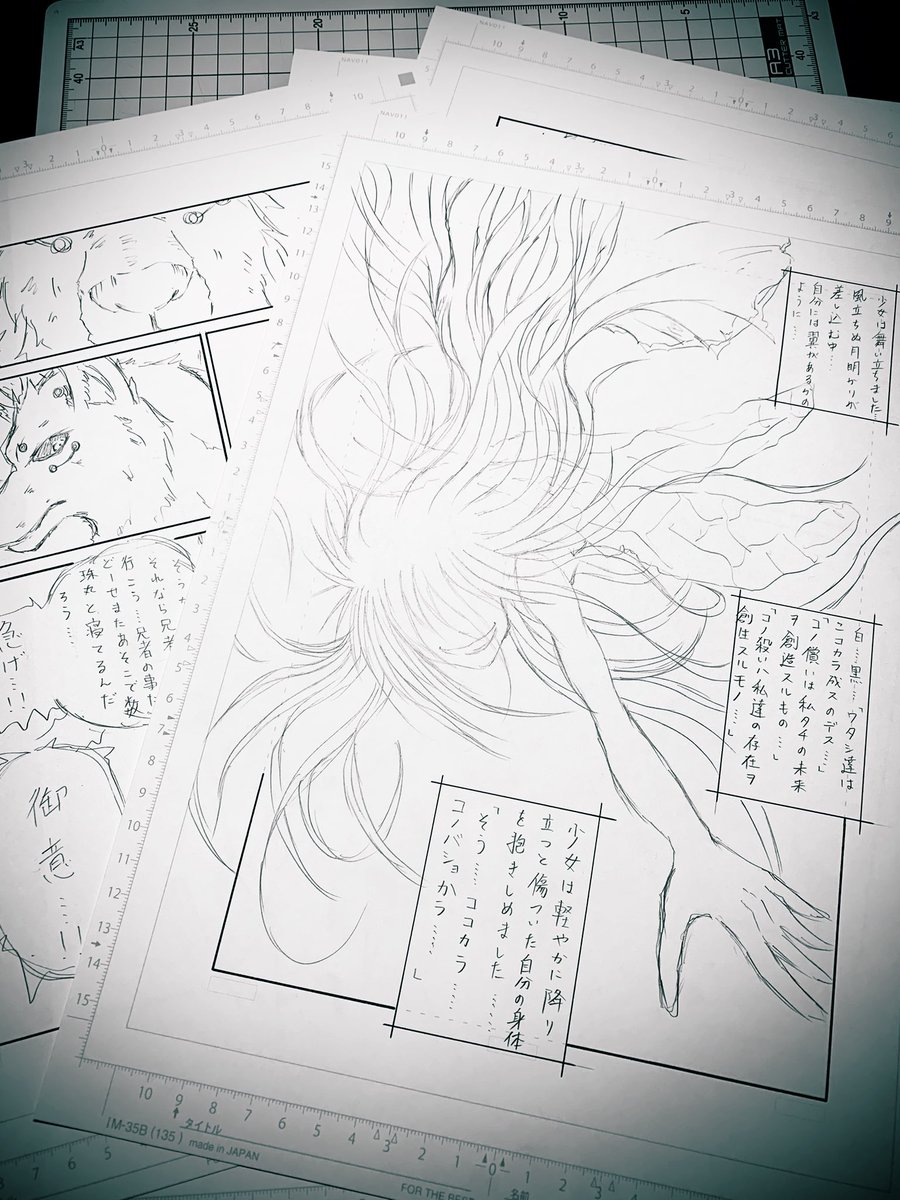 下書きも順調に。 しかし漫画はなかなか展開が難しいー! より面白く、読者さんが気になるようにっ!ってめちゃくちゃ難しい。 #イラスト #創作漫画 #名も亡き血戦 #2DogZ #漫画好きさんと繋がりたい #イラスト好きさんと繋がりたい #うちの子 #アナログ