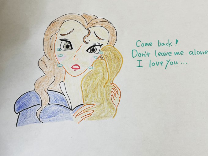 Come back! Don't leave me alone. I love you... #Belle #BeautyAndTheBeast #Disney #DisneyPrincess #ベル #美女と野獣 #ディズニー #ディズニープリンセス #イラスト #ラストシーン #名シーン #色鉛筆画 #色鉛筆イラスト